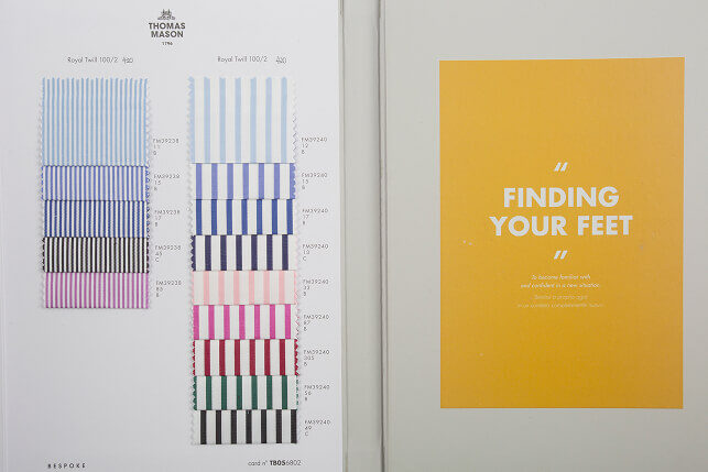 Our fabrics are crafted from natural fibres, meaning they are breathable, soft, and the highest-quality suiting fabrics available on the market. To ensure a diverse and high-quality fabric offering, we work with an array of leading artisanal suppliers worldwide, including Thomas Mason of Albini Group. Whether you’re looking for a business shirt, a cotton suit, or something more playful for weddings or special occasions, our collections of fabrics cover all occasions and weather, with hundreds to choose from.